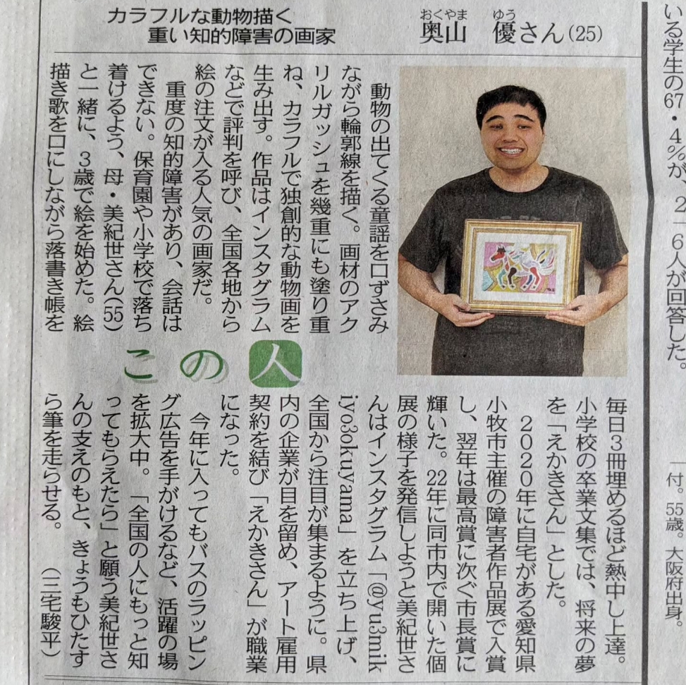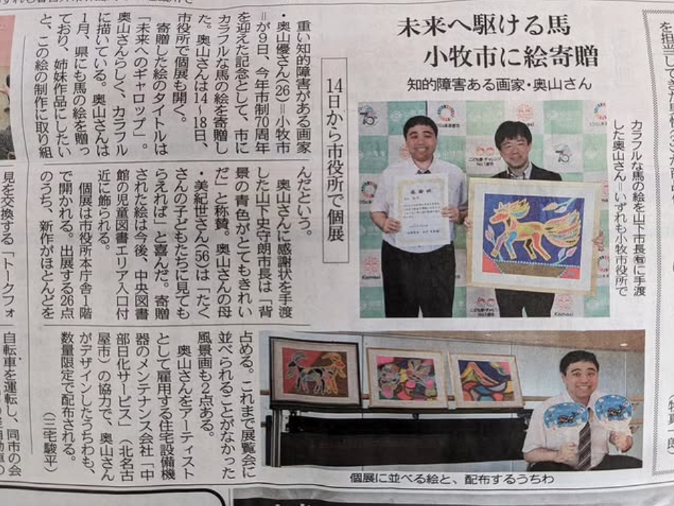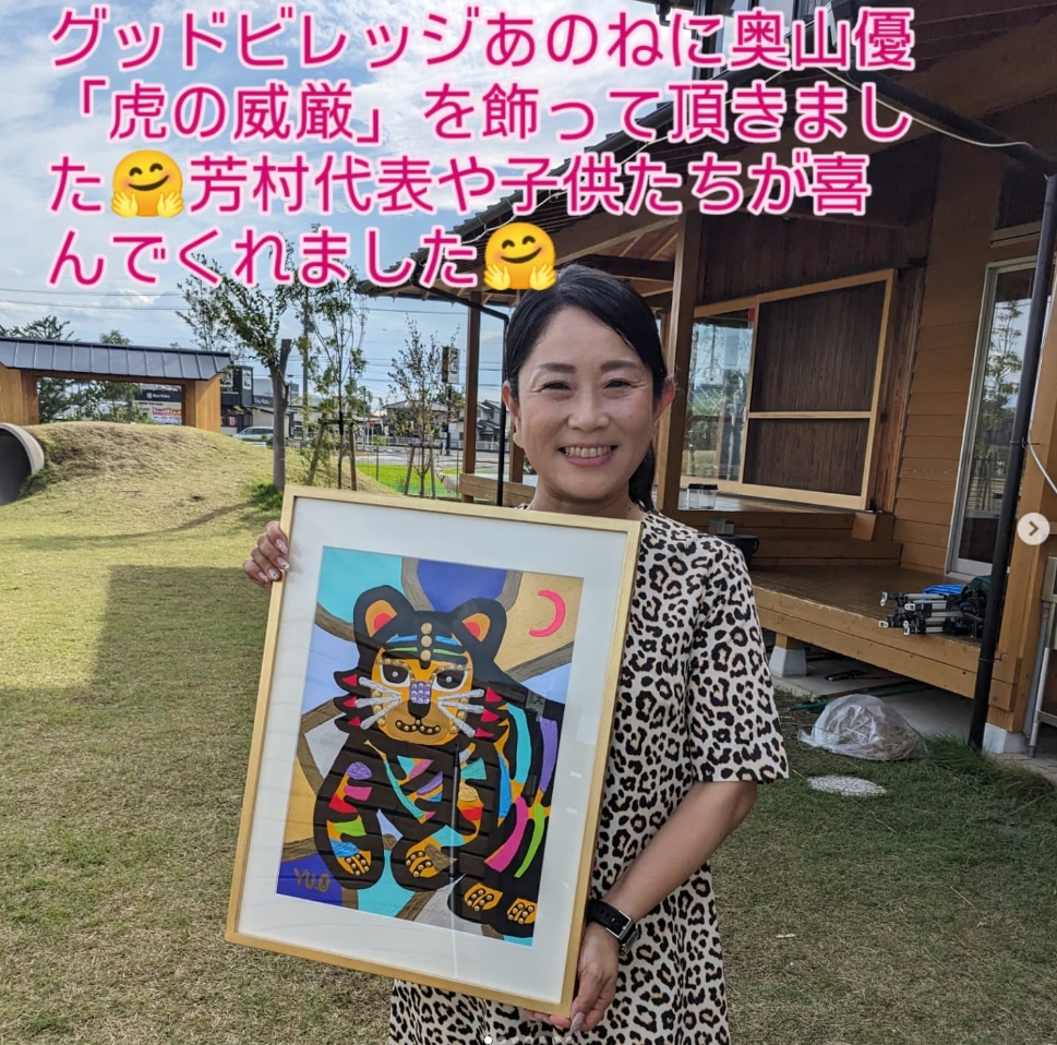 現在は、親子二人三脚で、アート活動をしています。一人でも多くの方に、 奥山優の作品をご覧になって頂けたらと思います。皆さん、奥山優の応援を、 どうぞ宜しくお願い致します。
